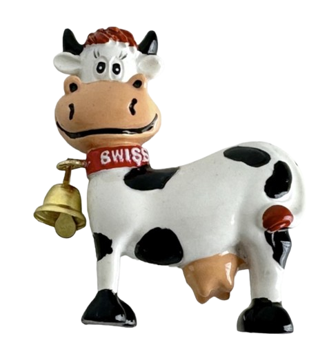 Aimant vache avec cloche or en céramique avec clochette or